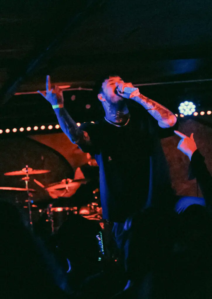 The Requiem kicked off the night with a darker, more atmospheric vibe. Self proclaimed “emo” band from Florida, filled the old bowling alley with haunting melodies and intricate compositions creating an atmosphere that was captivating and beautifully contrasted with the acts that were to follow. Downswing was next with a relentless onslaught of aggression. Their hardcore sound reverberated through the venue, igniting mosh pits and two stepping that kept the energy at a fever pitch. With no slowing down Savage Hands proceeded with a burst of fiery energy immediately grabbing the attention of the crowd. Leaving everyone in anticipation for the final act.