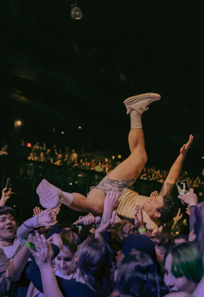 If anyone in the audience hadn’t heard of Drain before, they were in for a treat. Within the first 30 seconds, Sammy, the lead vocalist, was front flipping into the crowd and tossing his mic to whoever “knew the lyrics of this song.” It suddenly went from a night of innocent pop-punk fun to a true hardcore show, which Boston is no stranger to. Their high energy and crowd engagement along with all the stage dives and crowd surfing made for one fiery performance from the Santa Cruz natives.