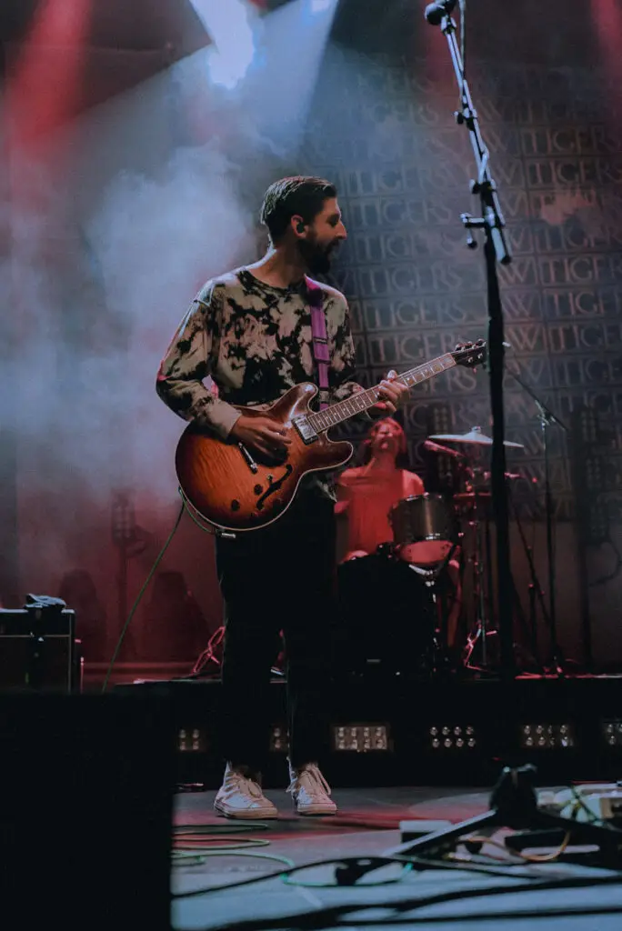 Tigers Jaw wasted no time diving into their eclectic blend of indie rock and emo melodies. The band’s infectious energy and raw emotions quickly set the tone for the night. The band’s vocalists, Ben Walsh and Brianna Collins effortlessly traded heartfelt lyrics, their voices intertwining in a harmonious dance.