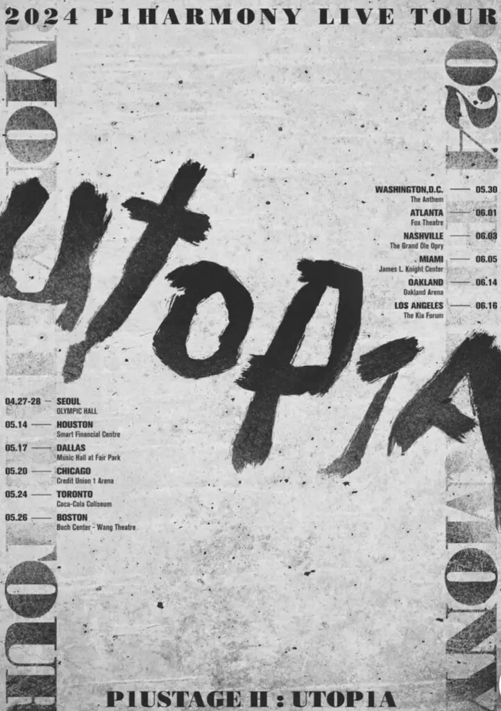 Following the release of their first full album, Killin’ It, P1Harmony announced their next tour, P1USTAGE H: UTOP1A. The tour succeeds their previous one, P1USTAGE H: P1ONEER, which attracted thousands of fans across North America, Asia, and Europe. The group will be reuniting with their beloved fans–P1ECES–on their P1USTAGE H: UTOP1A tour starting April 27 in Seoul, South Korea.