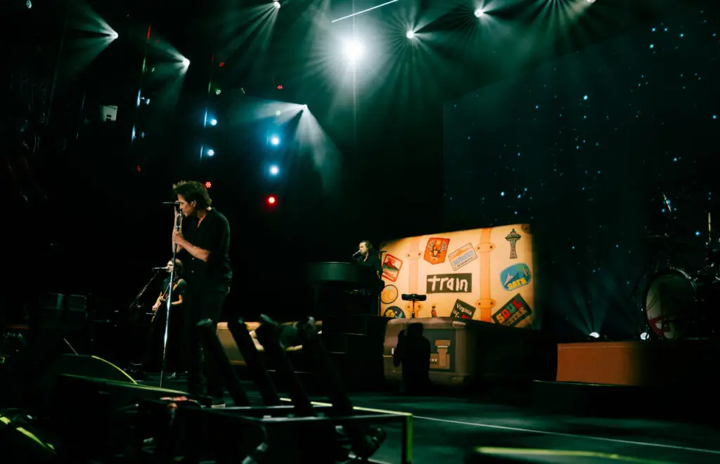Digging deeper into the set, Train performed a mash up of “Meet Virginia” and “The Joker”, bringing Kevin from REO Speedwagon back out for the vocal part of “The Joker”. Following this Patrick introduced us to his son, Rock Monahan, who wowed the crowd with his cover of Led Zeppelin’s song “Over The Hills and Far Away”. Performing song “Long Yellow Dress”, Patrick teased “Hey Soul Sister”, before telling the crowd, “No you’re not ready for that one yet,” and continued his set with “Play That Song”, and “Parachute”. Continuing on with their song “Angel In Blue Jeans”, Train transitioned the songs outro to being “Too Sweet” by Hozier.