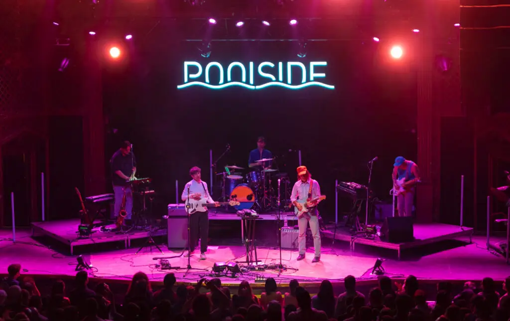 Formed in 2011 by Jeffrey Paradise and Fillip Nikolic, Poolside has become known for their unique take on nu-disco, which they call “daytime disco.” The band’s lineup, which currently includes Jeffrey Paradise (lead vocals/guitar), Vito Roccoforte (drums), Mattie Safer (bass/vocals), Casey Butler (saxophone/vocals), and Alton Allen (vocals/guitar), brings together a diverse array of talents to create a sound that is both alternative and timeless.
