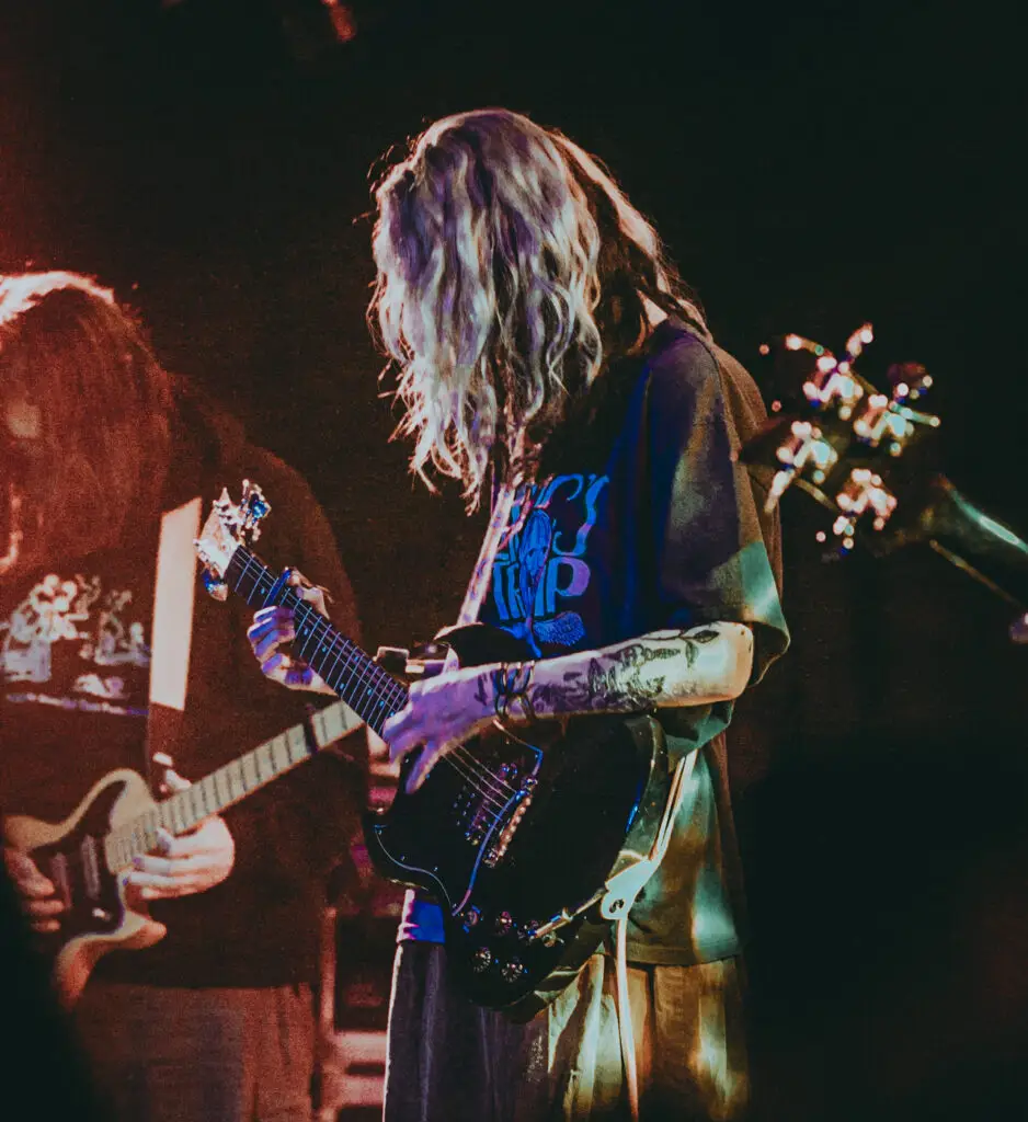 Lights of red cascaded as On Being an Angel stepped on stage as the first opener for the night. Combining angsty guitar riffs with elements of bubble gum pop, their grunge ambience was only enhanced within the dark walls of The Paper Tiger. Based in Austin, the band expressed their love of playing in San Antonio and even met with fans to take pictures at the merch table after their setlist had ended!