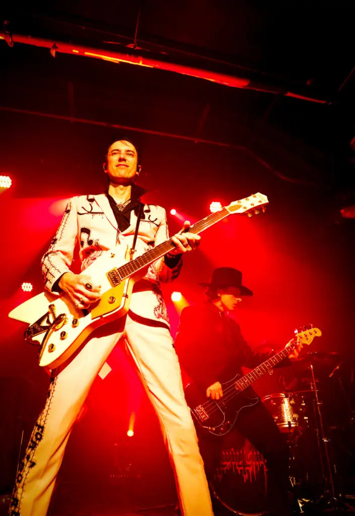 Known for their high-energy performances, we asked Twin Temple how this tour is different from others in the past. “This is hopefully our most evil tour yet. It’s always a pleasure seeing your nightmares come to life before your eyes. You can expect lots of rhinestones, the color pink, big hair, horniness, some good ol’ rock and roll and maybe a sacrifice or two…”
